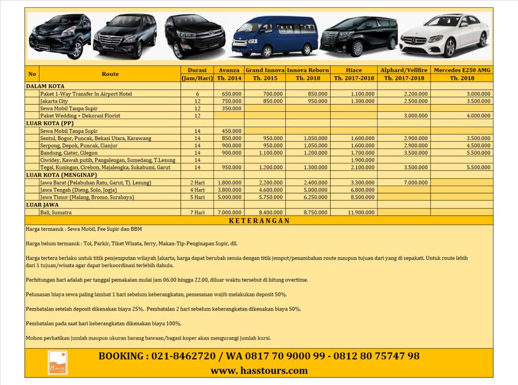 VVIP Hass Rent Car merupakan perusahaan sewa / rental mobil mewah yang berlokasi di Jakarta. Kami memberikan layanan sewa mobil mewah yang mengutamakan kenyamanan pelanggan, dengan harga sewa yang tergolong murah. Kami berpengalaman dalam melayani berbagai klien secara profesional diantaranya artis dan pejabat serta tamu negara. Kami melayani sewa / rental mobil untuk wilayah : Jakarta, Bogor, Depok, Tangerang, Bekasi dan sekitarnya.